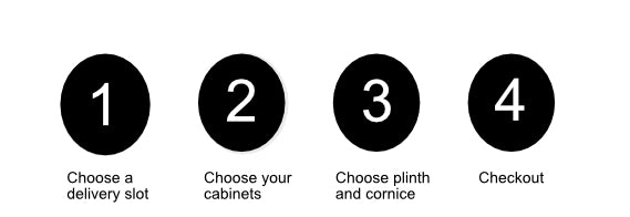 Click on the first box below to choose your delivery slot, then click on any of the boxes below to choose your cabinets from each category.